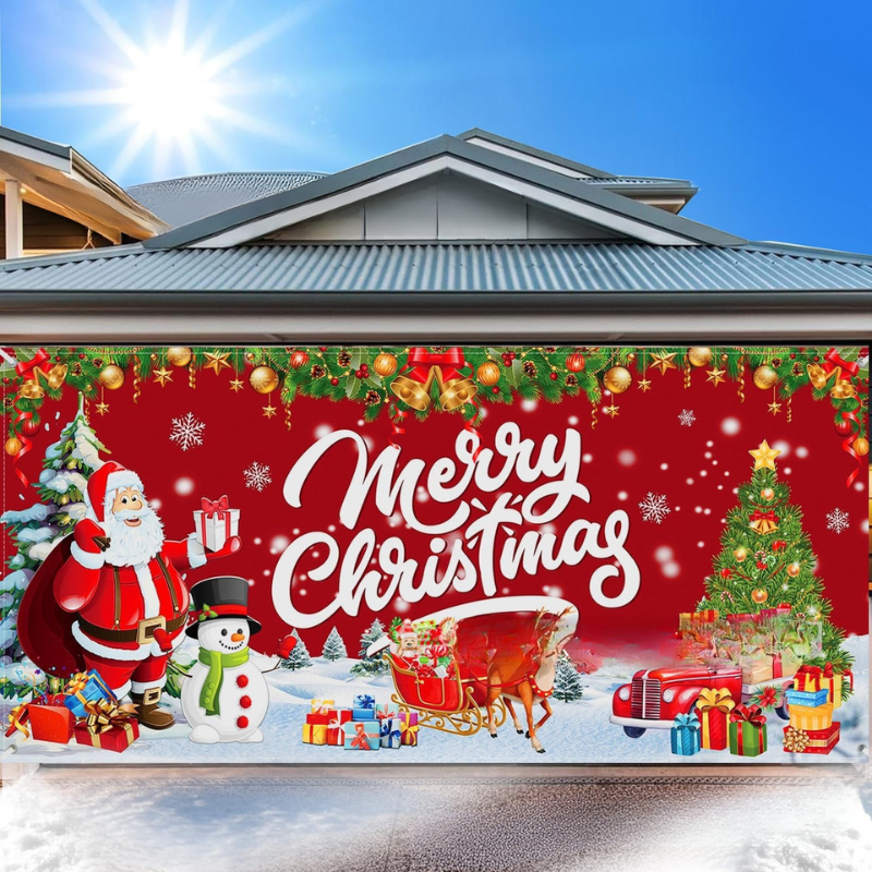 🎅🚙 Make your garage the jolliest stop in town. Christmas Garage Door Cover, paired with holiday decor and gifts, brings the North Pole to your driveway and welcomes Christmas in style. This vibrant cover shows his red truck loaded with gifts and turns your garage into a magical scene that neighbors and family will never forget, making it one of the most unforgettable Christmas decoration ideas for your home.
