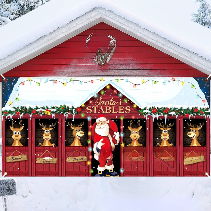 Get ready to hear the neighborhood gossip shift from Susie’s fruitcake to your epic Santa’s Garage Christmas Garage Door Cover that brings joy to the whole block.