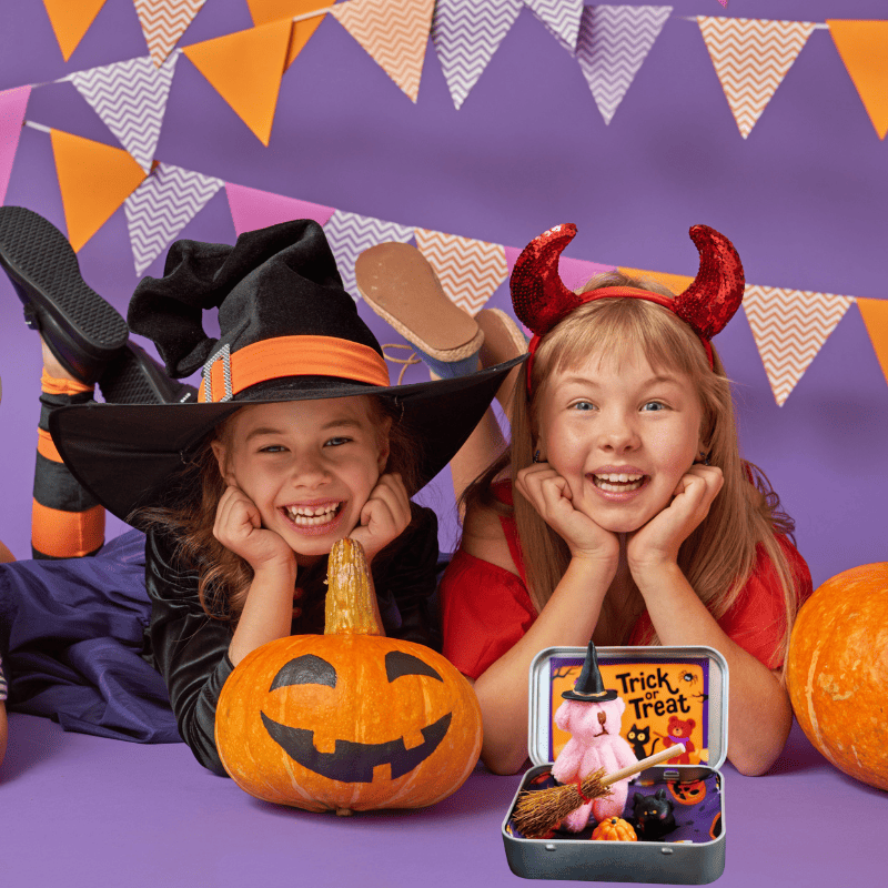 - 1 Themed Display Box – Features “Trick or Treat” and cute teddy & cat designs