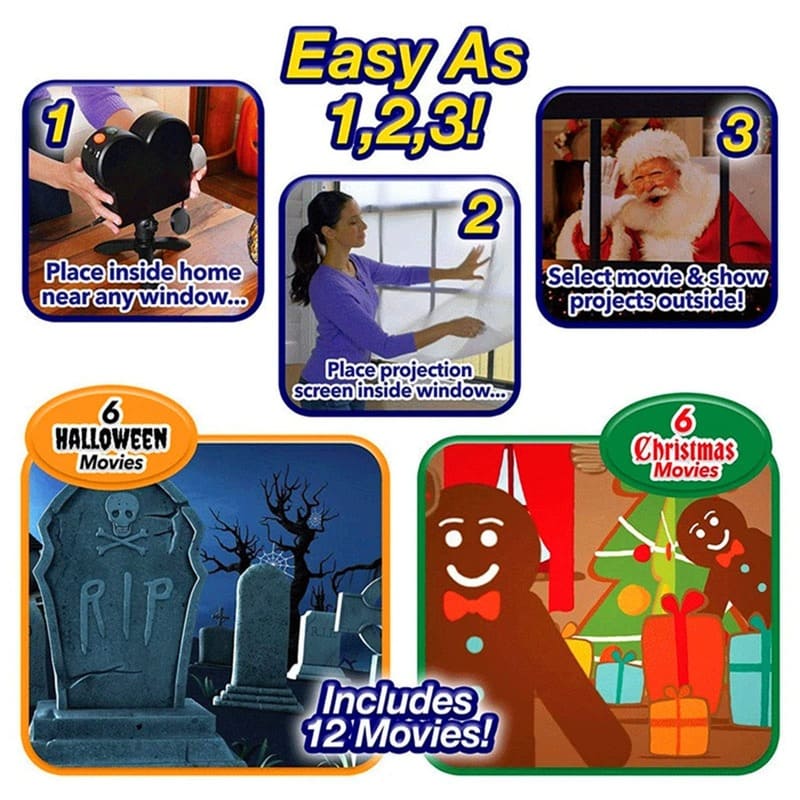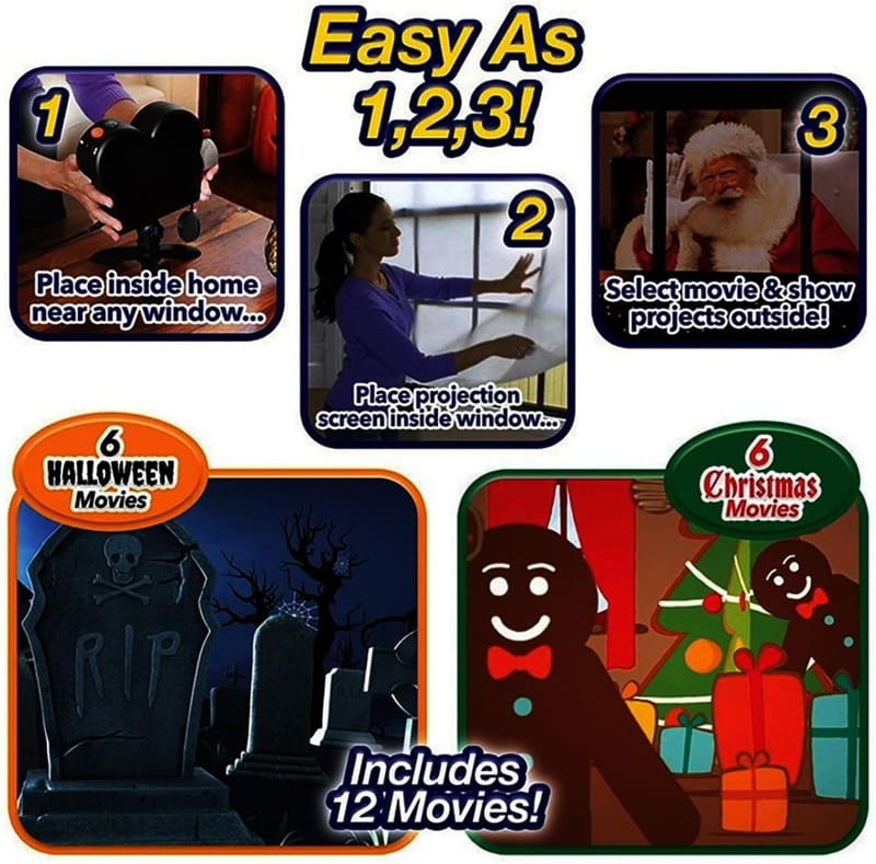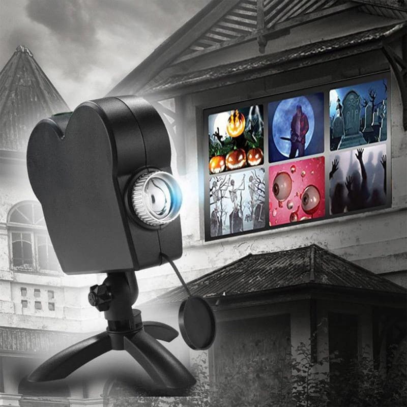 Why settle for static decorations when you can play full horror movies on your walls and windows? This projector comes preloaded with 12 high-resolution videos:
