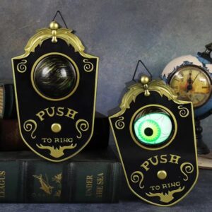 No one survives the first ring without a scream. The moment that creepy button is pressed, the eyeball snaps open, glowing an eerie green as it rotates and whispers sinister sounds.
