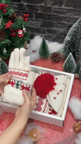 Practical yet full of holiday charm, this beanie, scarf, and gloves set is the perfect gift for kids, friends, or family. Give the gift of warmth, joy, and festive style this Christmas season.