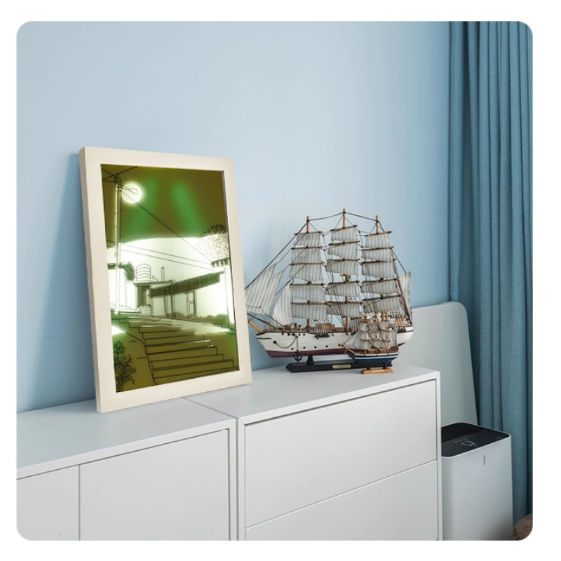 Bring warmth and elegance into your space with our LED Light Painting! Designed for lovers of clean aesthetics and serene moments, this piece seamlessly blends art and ambient lighting to create an inviting atmosphere. Its minimalist frame complements any room, while the soft glow adds depth and serenity to your surroundings.