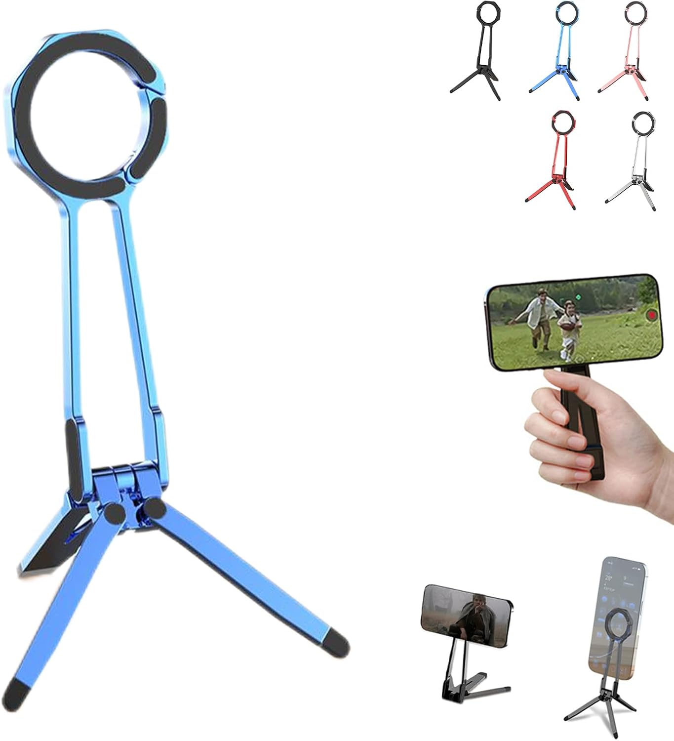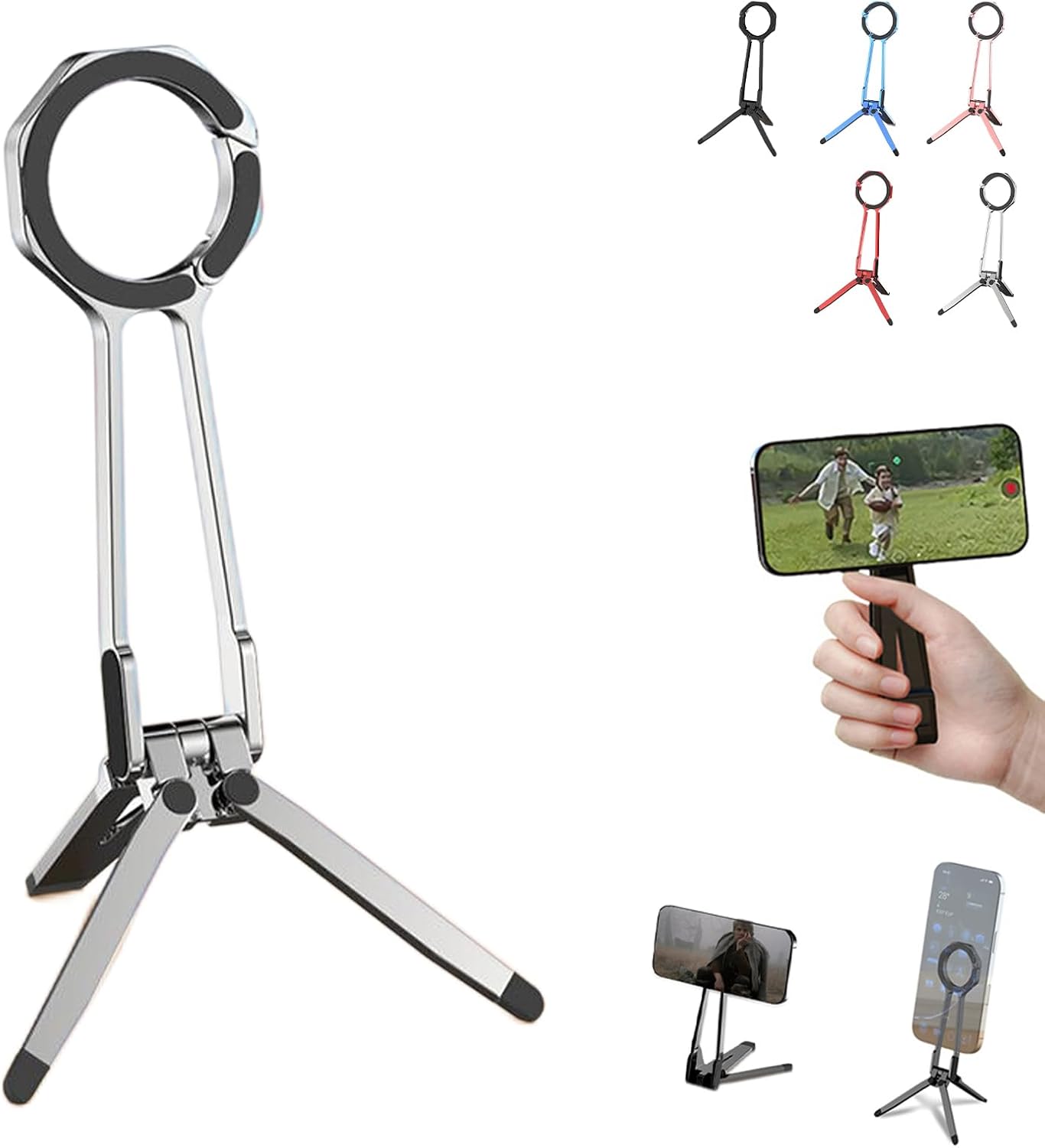 From magnetic mounts to a universal 1/4″ screw port, this tripod is designed to fit a wide range of setups. Attach it to standard tripods, metal surfaces, or use it standalone. Compatible with all smartphones—iPhone, Android, and more—whether they support magnetic mounting natively or use the included ring.