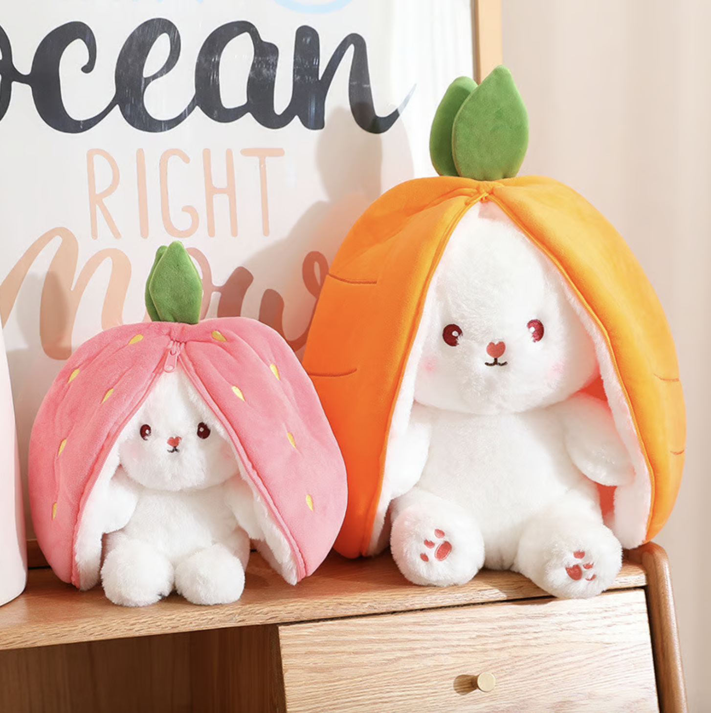 Unlike ordinary plushies, Plushy Sprout Bunny brings an element of wonder to life. With a clever zip and flip, your cuddly bunny magically transforms into a plump strawberry or a cheerful carrot!