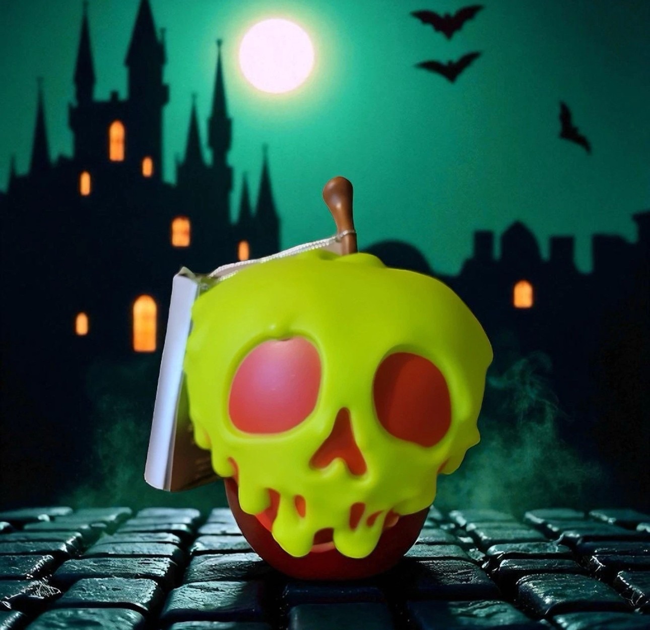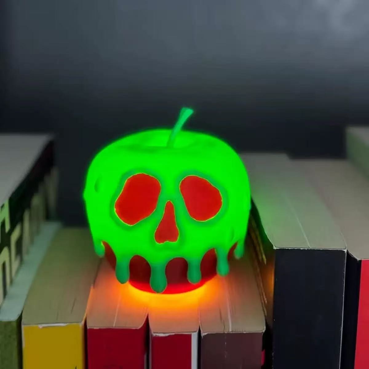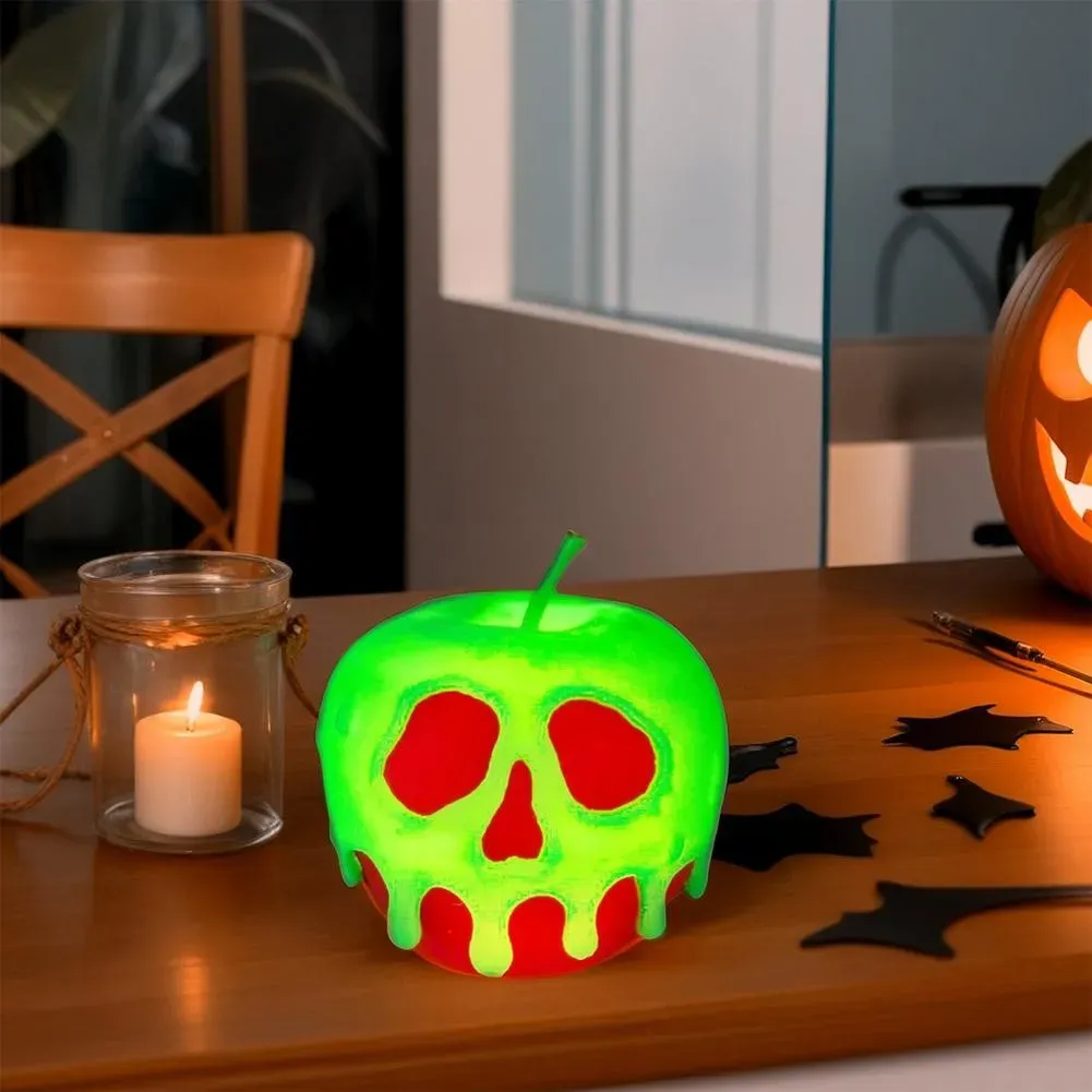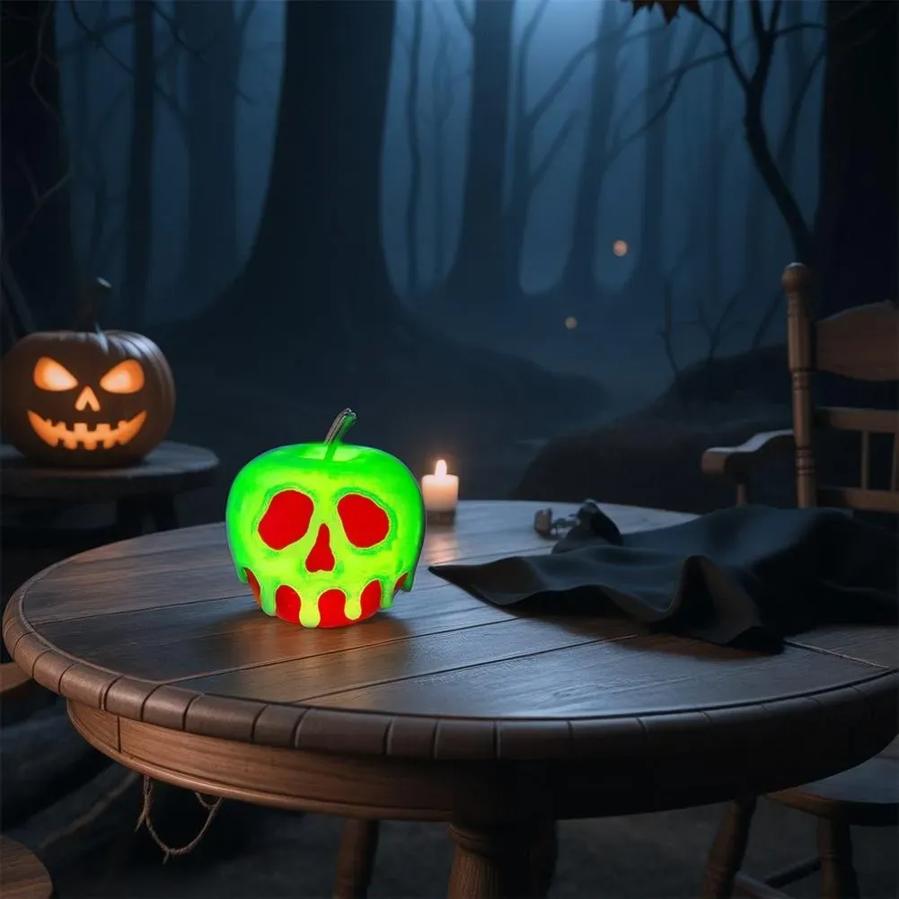 The softly sculpted poisoned apple design with an internal LED light creates a captivating glow, instantly transforming your space into a magical yet eerie setting.