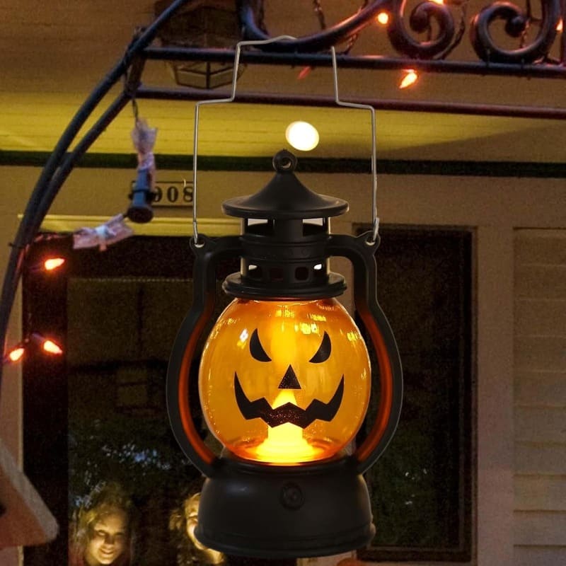 The lantern radiates a soft, golden-orange glow that instantly sets the Halloween mood. Its old-fashioned oil-lamp style frame paired with the carved pumpkin face creates a nostalgic, yet playful look. Place it on your mantel, bookshelf, or doorstep, and watch how it transforms the space into a cozy, mysterious Halloween scene. Every detail of the design screams tradition while adding a modern festive charm.