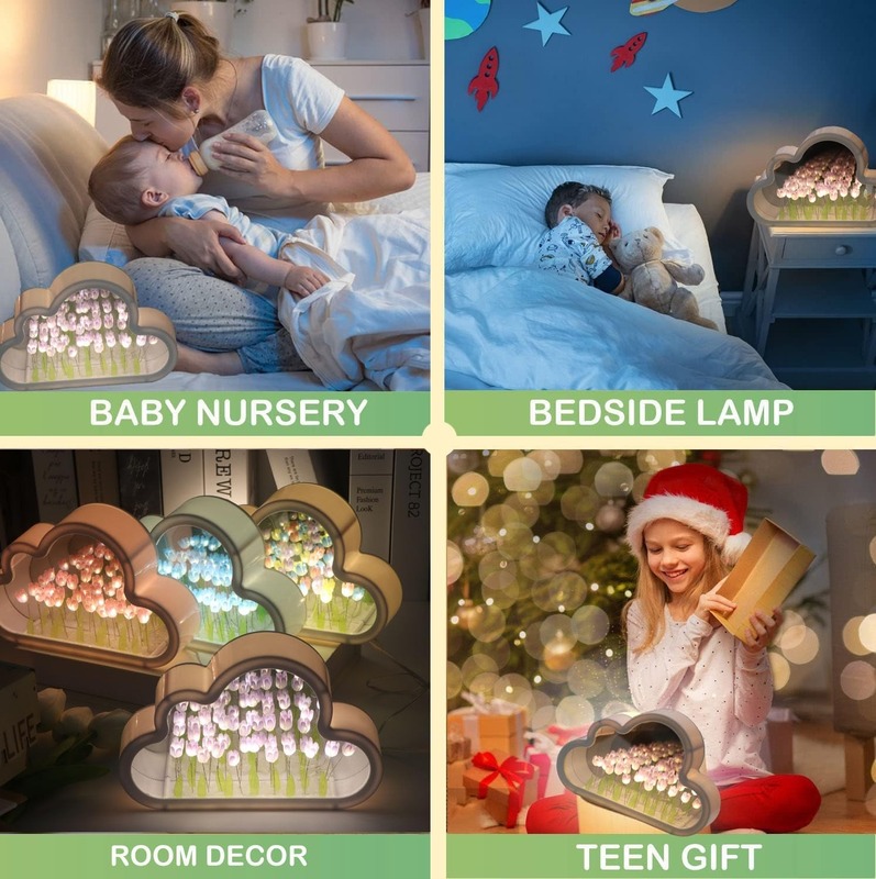 The soft, warm lighting paired with delicate tulip blooms instantly sets the mood. Tulip Mirror Cloud makes every space feel cozier, more romantic, and just a little whimsical.