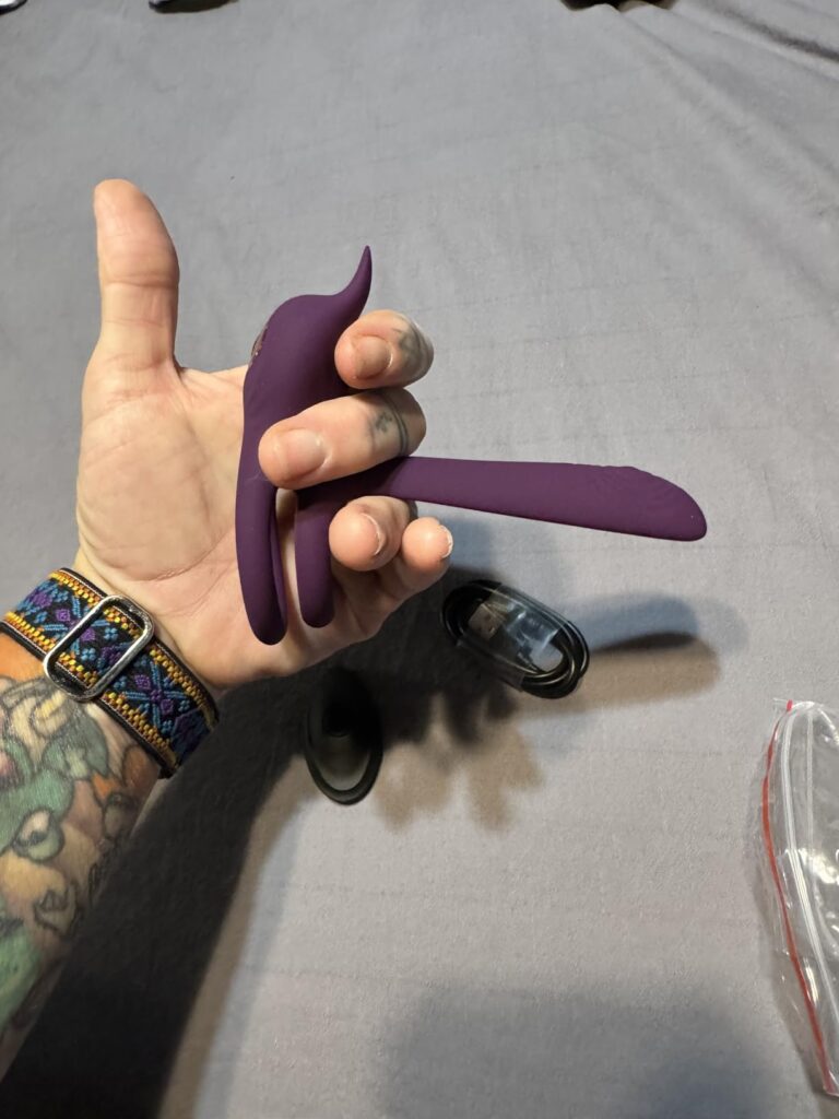 The design of this toy is notable for its compact size, comfort, and ability to enhance the receiver’s experience without diminishing the wearer’s stimulation, unlike a sleeve. It offers multiple vibrating modes, and we found a couple of settings that we really enjoy, which is unusual for us since our other toys typically only have one preferred mode. The toy is user-friendly and comes with a remote. I wear it, and my partner can adjust the settings to her preference without interrupting my rhythm. This is a great product at a great price.
