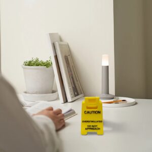 The “Caution: Overstimulated” message sends a clear but funny signal to others, helping you set boundaries while keeping the humor alive.