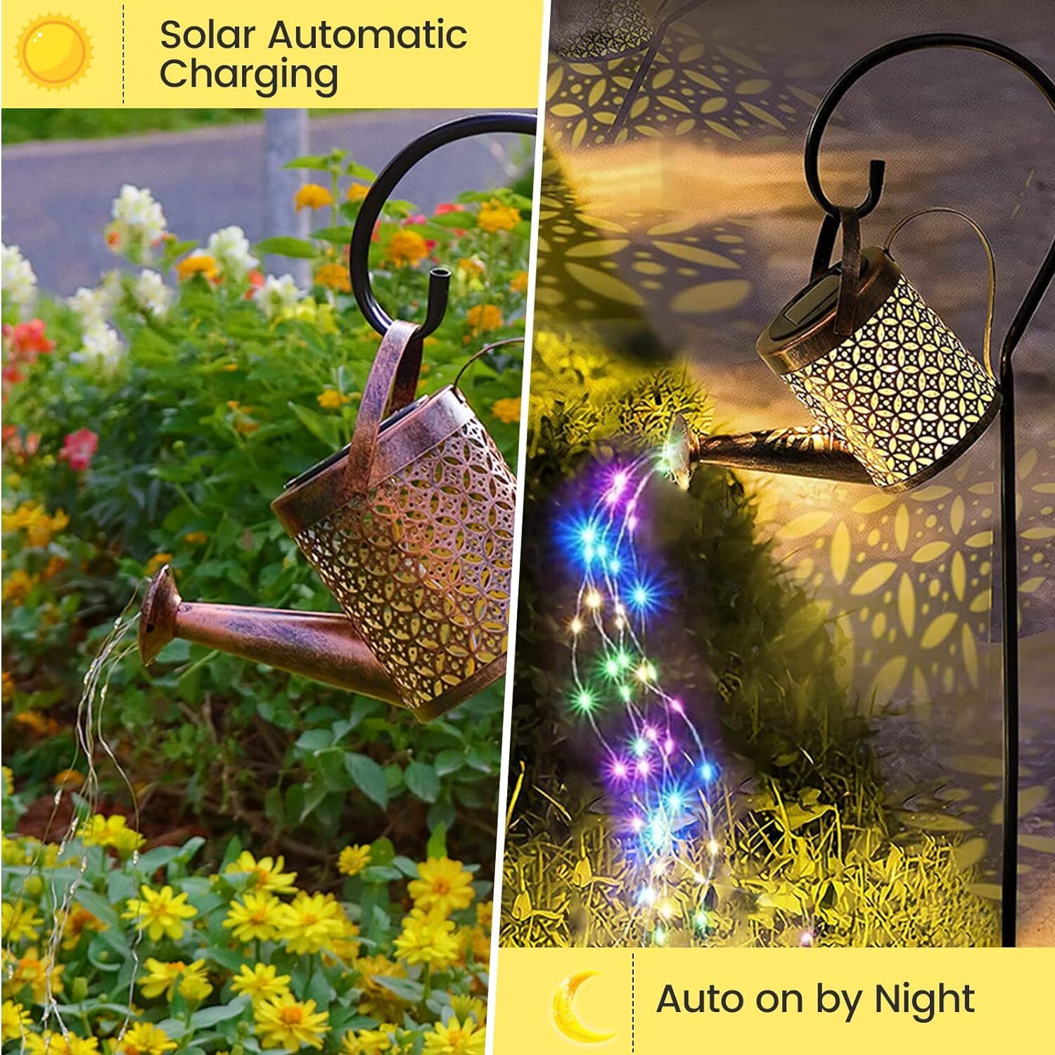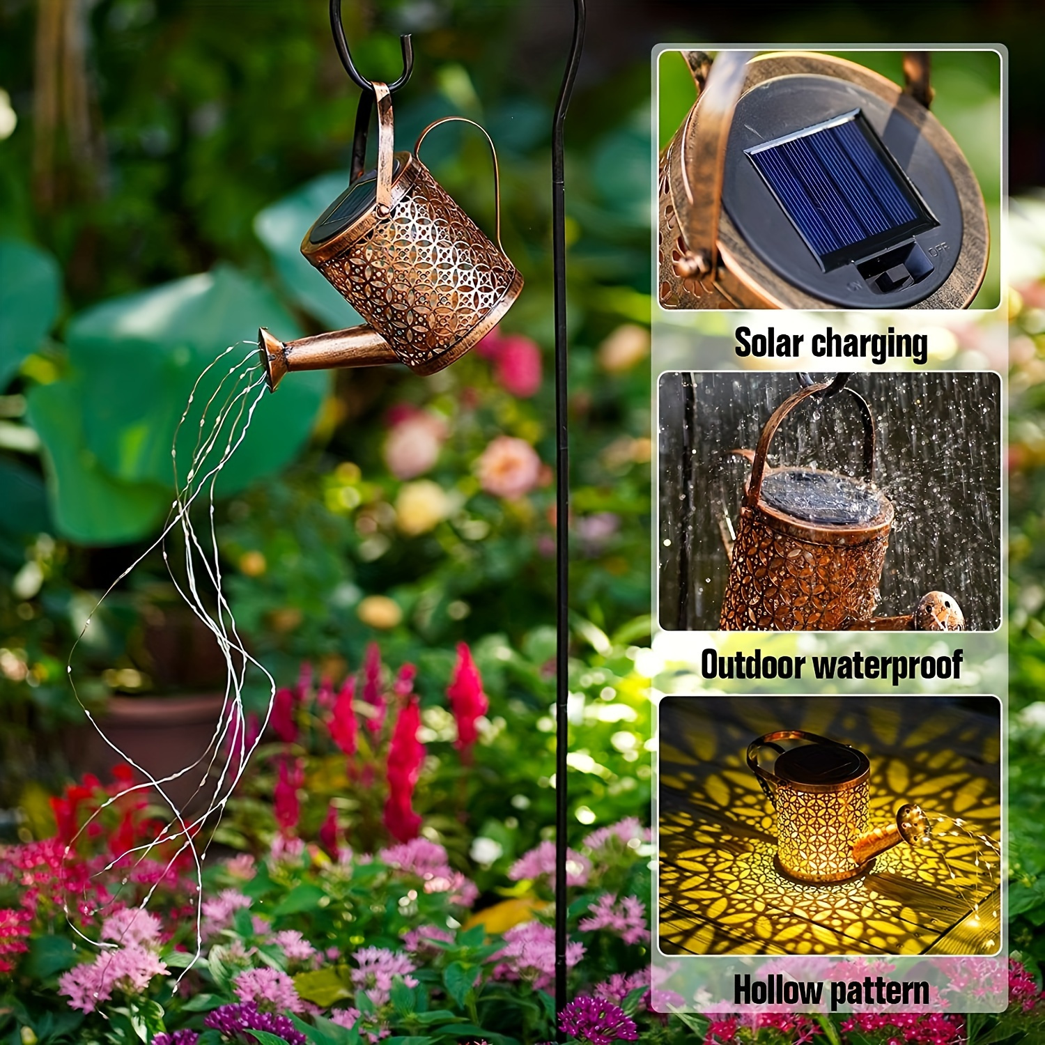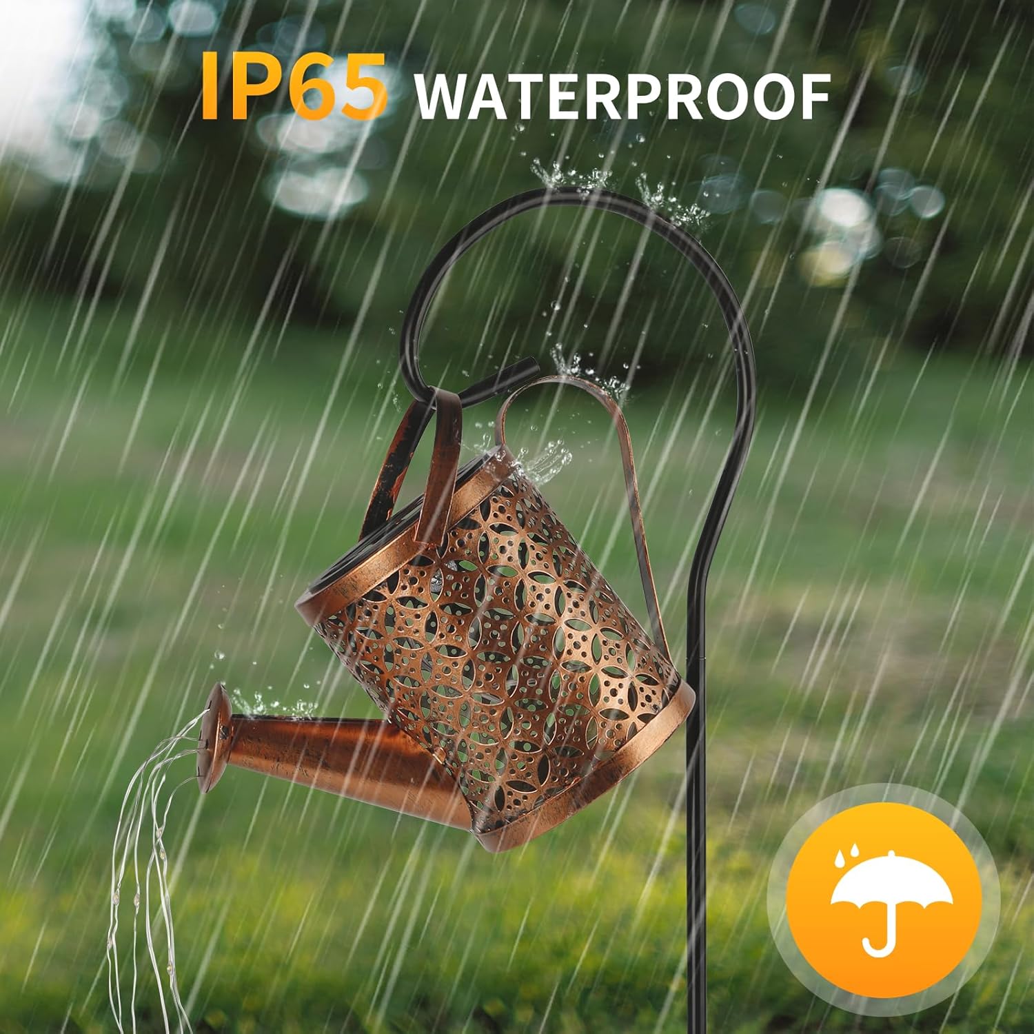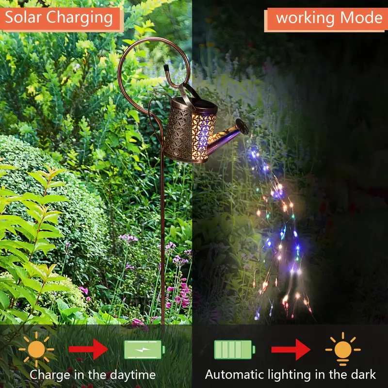 Made from iron and flexible resin with a protective anti-rust coating, this solar watering can light is built to last. Its IP65 waterproof rating ensures it withstands rain, snow, frost, or sleet—perfect for year-round indoor or outdoor use.